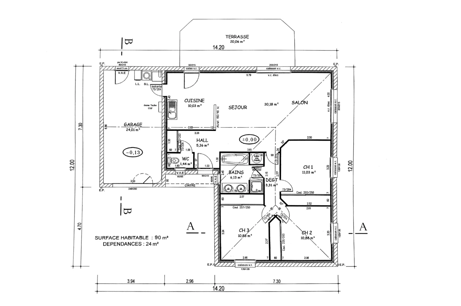 Située dans un environnement calme et agréable, cette maison de plain-pied de 90 m2, parfaitement entretenue, vous séduira par sa luminosité, son confort et sa fonctionnalité. Elle se compose de :