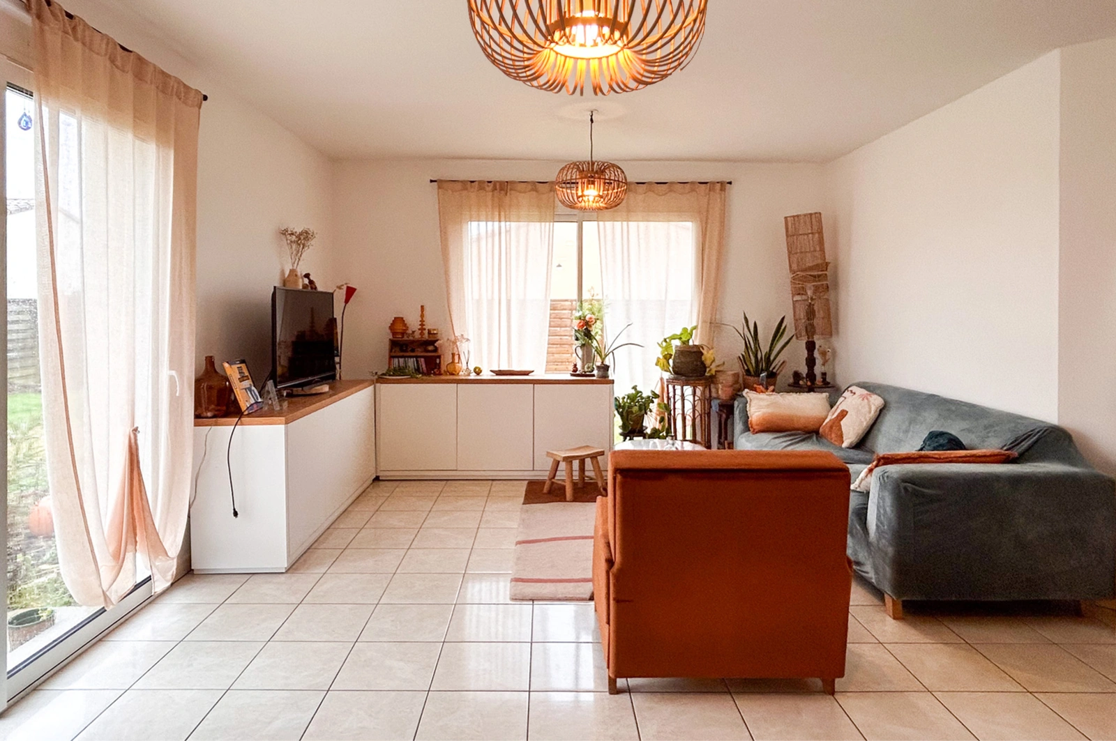 Située dans un environnement calme et agréable, cette maison de plain-pied de 90 m2, parfaitement entretenue, vous séduira par sa luminosité, son confort et sa fonctionnalité. Elle se compose de :